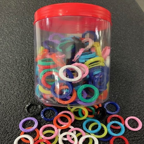 CAIXA COM 200 ARGOLAS PLASTICAS DE VARIAS CORES
